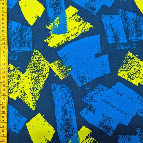 Dieser Jersey Stoff in abstraktem Blau ist genau das Richtige, wenn Du mal etwas anderes nähen willst. Das Muster wirkt lebendig, aber nicht zu wild – perfekt für Shirts, Kleider oder coole Hoodies. Besonders praktisch: Du kannst ganz einfach einen passenden Bündchen Stoff dazu kombinieren und Deinem Projekt einen richtig sauberen Abschluss geben.