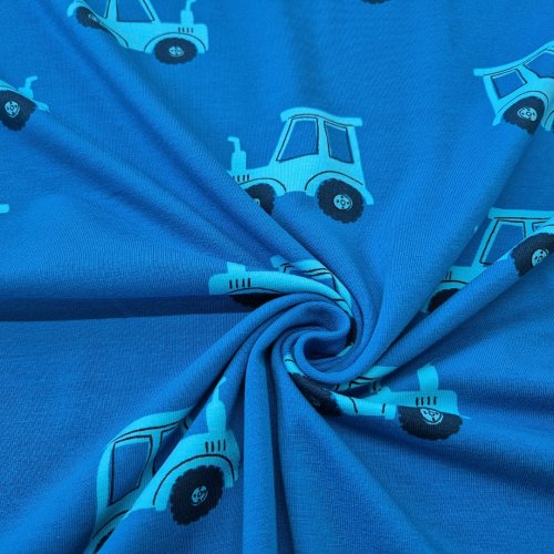 In unserem Onlineshop für Kinderstoffe findest Du Stoffe, die nicht nur gut aussehen, sondern auch im Alltag bestehen. Dieser Traktor Jersey ist genau so ein Kandidat: robust, bequem und einfach zu vernähen. Perfekt also, wenn Du etwas suchst, das lange Freude macht.